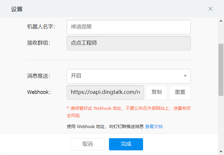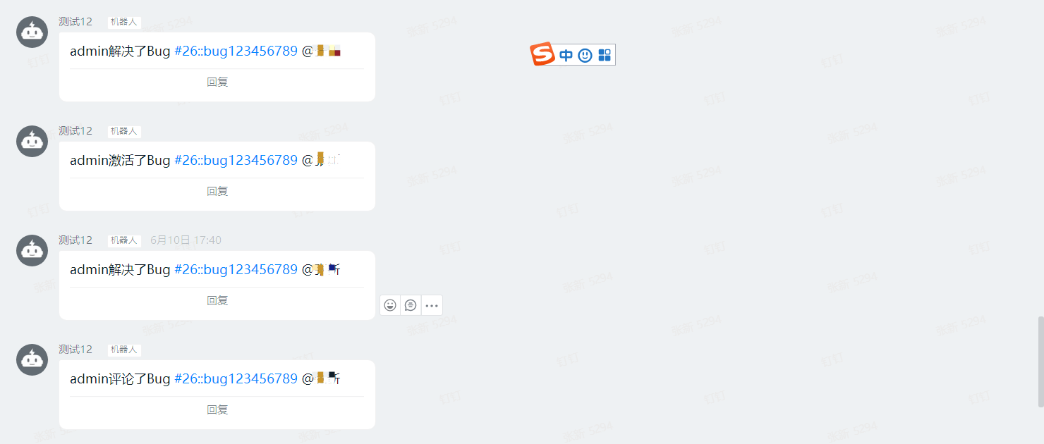 全部设置完成后,在禅道提bug就能自动在群里发生通知。