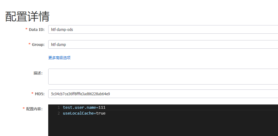 根据需要自己创建好对应的命名空间namespace,然后根据自己需要在配置列表创建dataID和group并添加配置文件(此处我用的是properties文件配置方式)