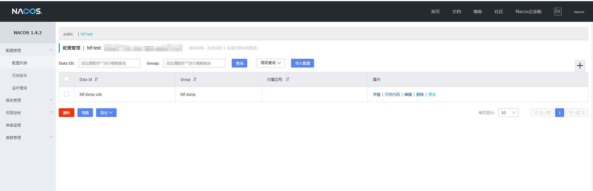 注意:填好服务器的ip+端口号,namespace就是在上一步中创建的命名空间的id那一串字符