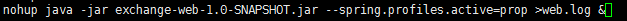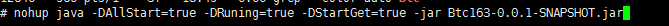 上传到服务器,然后执行java -jar命令启动,你也可以在命令中加上JVM的优化参数和一些环境参数。我下面这个就加了环境参数,你也可以从这里指定你启动时的配置文件,和指定日志输出文件(需要特别注意:一定要在命令的最后加一个&符号,要不然,你Ctrl+C的时候项目会停掉,加上后意思是后台启动)