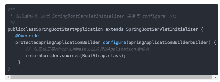 在application的同目录下,添加一个新的类,继承SpringBootServletInitializer并重写其configure方法