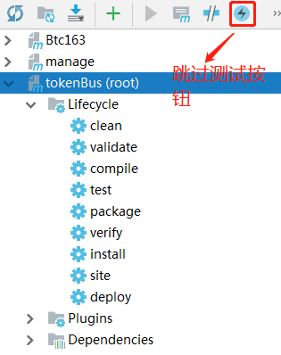 使用maven工具打包(jar包),打包时要注意,由于模块与模块之间的依赖关系,所以打包是要有顺序的,需要先打被依赖的模块;你也可以在父类模块上打一个包。我用的是IDEA工具开发。打包流程先打开打包跳过测试,然后分别执行clean和install