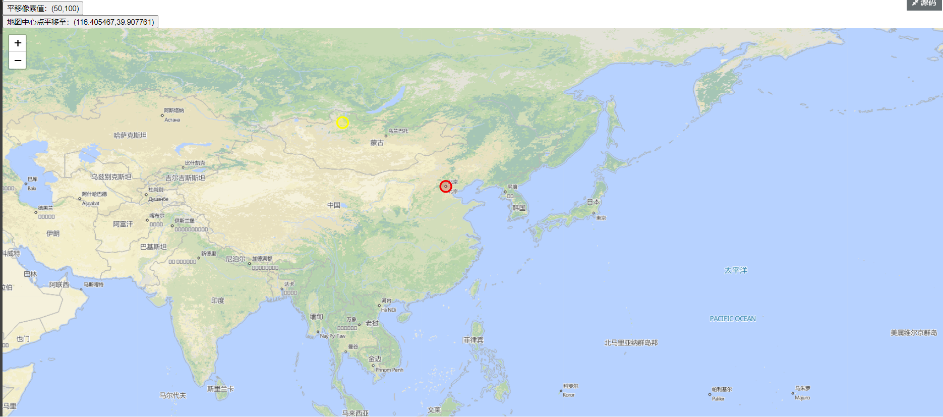 map.panBy(通过像素点平移),此时将地图平移到黄点处: