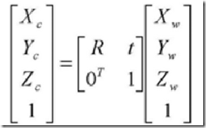 由于摄像机可以安放在现实环境中任意位置,所以在环境中任选一个基准坐标系来描述摄像机位置,并用它描述环境中任何物体的位置,该坐标系为世界坐标系。它有Xw、Yw和Zw轴组成,摄像机坐标系与世界坐标系之间的关系可以用旋转矩阵与平移向量t来描述。