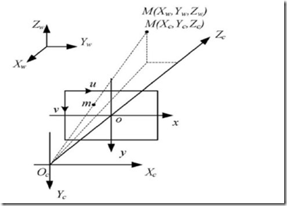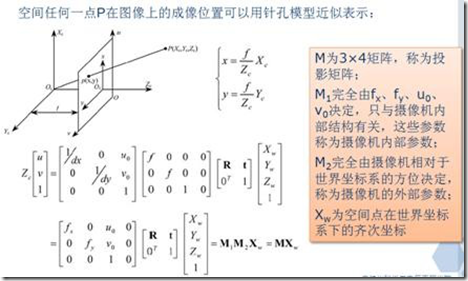 由针孔模型我们可以知道,如果一直摄像机的内外参数,就知道投影矩阵M,这时候对任何空间点就可以求出其对应图像坐标,但是如果已知空间某点的像点m位置(u,v)即使已经知道摄像机内外参数,Xw也不能唯一确定,因为在投影过程中消去了Zc的信息。