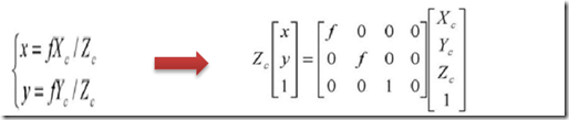 在上面的式子中M是3x4不可逆矩阵,当已知M与(u,v)时,由公式得到的三个方程中消去z,只可以得关于Xw,Yw与Zw的两个线性方程,这个方程组即为射线OP的方程,也就是说,投影点为m的所有点均在该射线上,所以,该空间是不能唯一确定的。
