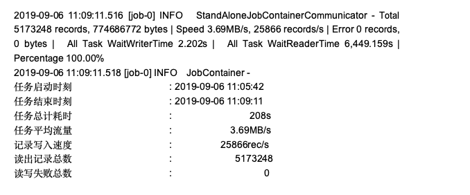 不得不说datax设计很强大。已经提供了比较好的监控统计的日志,对于定位问题节省了我们大量的时间。