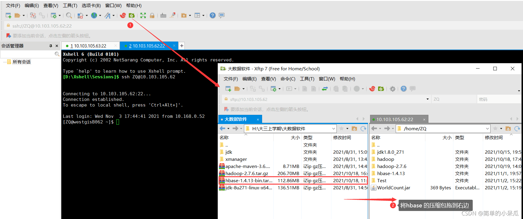 将 hbase-1.4.13.tar.gz压缩包上传到xshell并解压