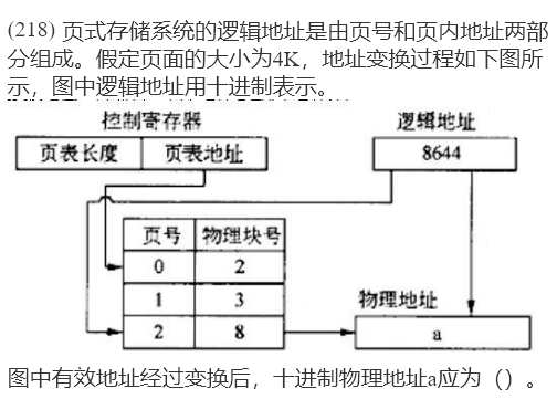8644/4096 = 2……452 (有效地址除页的大小,取整为页号,取余为页内地址。)