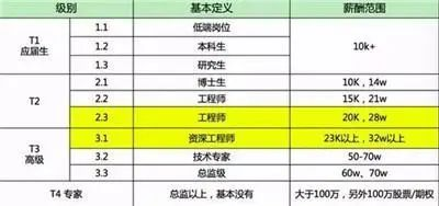 虽然上面的那个图不是顺丰的,薪酬这个也只是仅供参考,但是级别和基本定义是差不多对的上的,顺丰的话T3.2对应的资深工程师,可能分的更细一点,T3.3可能是个技术专家,总监的话应该都是T4级别了。