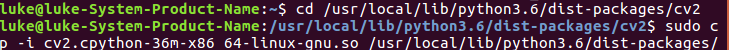 sudo cp -i cv2.cpython-36m-x86_64-linux-gnu.so /usr/local/lib/python3.6/dist-packages/