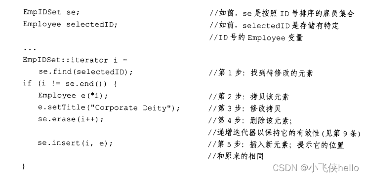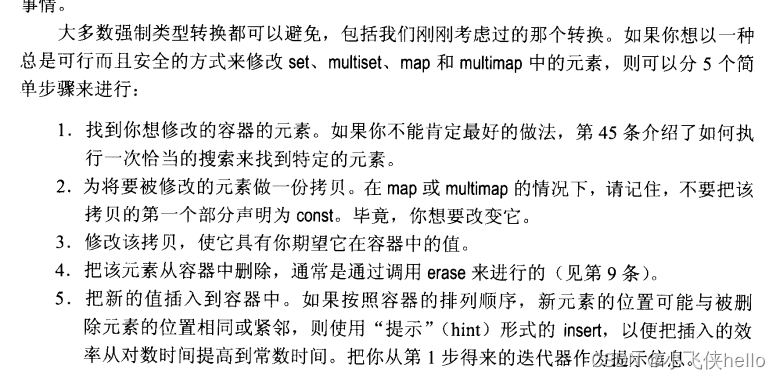 (10). 你需要使迭代器、指针和引用变为无效的次数最少吗?如果是这样,就要使用基于节点的容器,因为对这类容器的插入和删除操作从来不会使迭代器、指针和引用变得无效(除非它们指向了一个你正在删除的元素)。而针对连续内存容器的插入和删除操作一般会使指向该容器的迭代器、指针和引用变得无效。