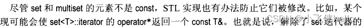 (4). 输出迭代器(如ostream_iterator、ostreambuf_iterator以及那些由back_inserter、front_inserter、front_inserter和inserter函数返回的迭代器)在赋值操作符内部完成其输出或者插入工作,所以,如果在使用这些迭代器的时候犯了错误,那么你所看到的错误消息中可能会提到与赋值操作符有关的内容。