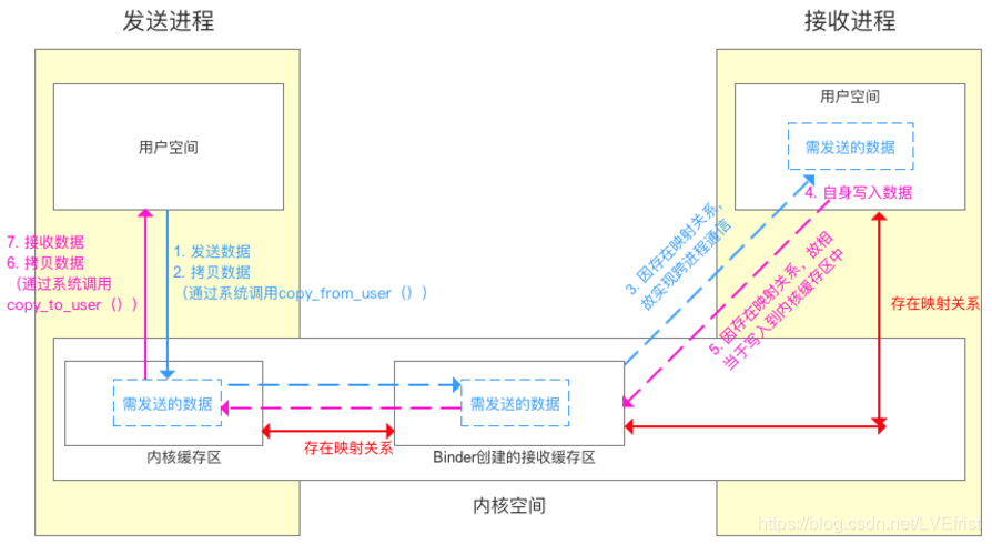 很多人都听过Binder的一次拷贝,但是再一问这个一次拷贝是怎么实现的时候,就会像我一样两眼一抹黑了。Android之所以自己搞一个Binder通信,就是得益于它的高效。所以一次拷贝原理是我们必须理解的问题。Binder只需要一次拷贝就能将A进程用户空间的数据为B进程所用。这里主要涉及两个点: