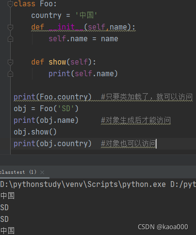 obj.country #这一步也能执行,静态字段可以通过对象访问