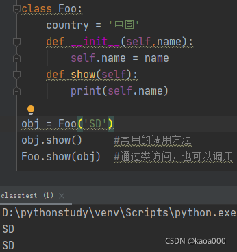 这里,构造方法与foo()方法的区别就是调用者不同,foo()方法是对象主动调用的,需要使用obj.foo('999')显式主动调用,而构造方法是Python调用的。
