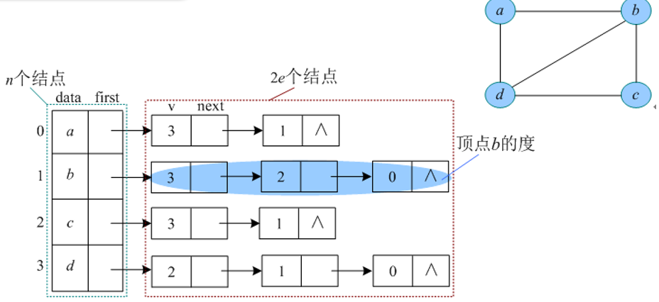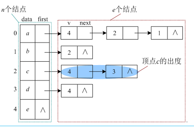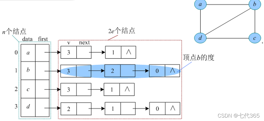 tips:说人话就是用一个一维数组,每个位置存放一个单链表的头结点,这个头结点有数据域和指向下一个节点(邻接点)的指针域.