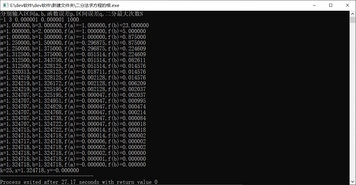 }这个里面我是定义了一个函数是x的三次方-x-1求它的实根(二分法只能求实根而且只能求一个)