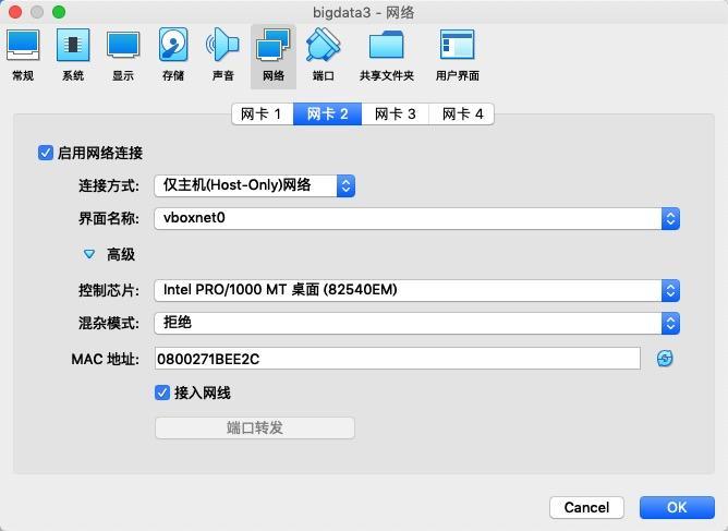 因此,使用双网卡方式,NAT+hostOnly,具体操作如下: