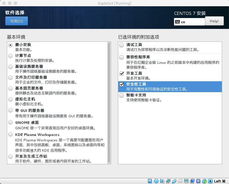 安装时注意选择“最小版本-基本开发工具和安全工具”即可,不需要安装图形界面