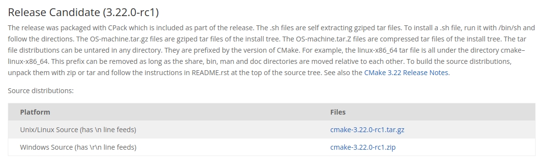 选择最新版本的源码包:cmake-xxxxxx.tar.gz