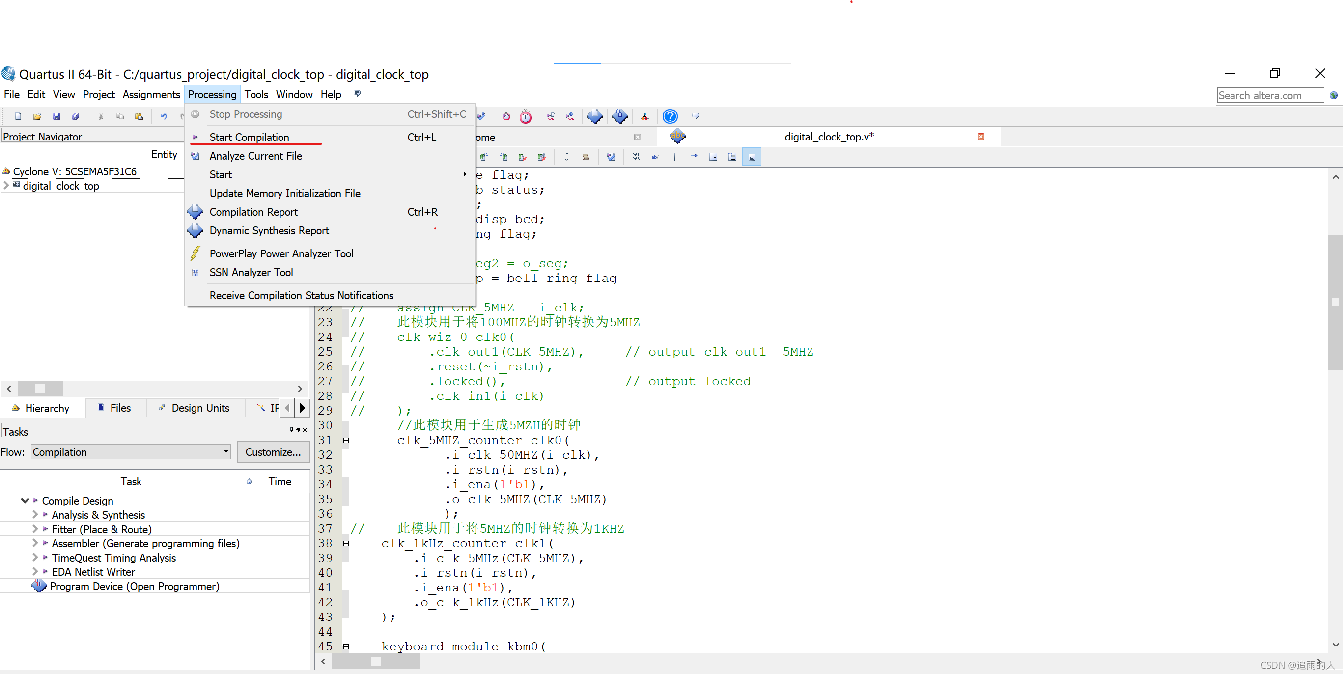分配完引脚并编译没错后就可以下载到板子上(不需要仿真)