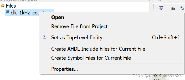 顶层模块和子模块。设置一个模块为顶层模块时,右键该模块,选择set as top-level entity