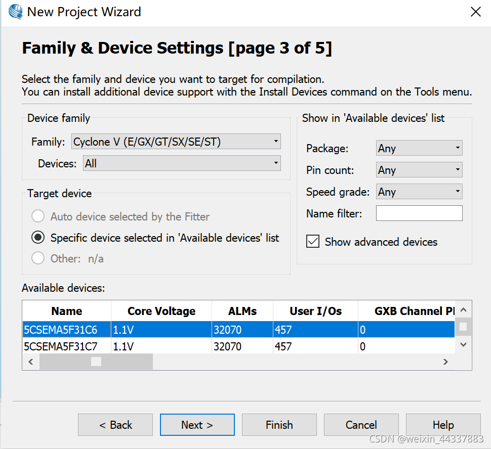 选择你需要使用的FPGA芯片型号,可在name filter中查找。