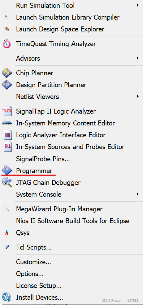 打开quartus中的programmer