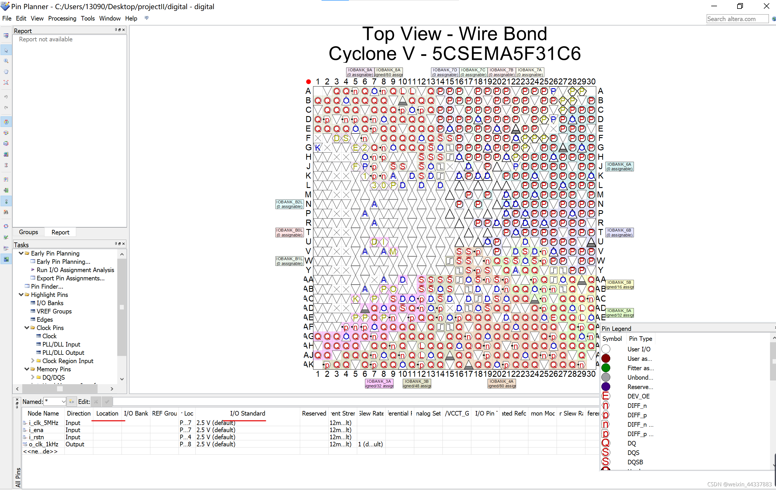 1. assignment -> pin planner 直接进行约束。在location 和I/Ostandard设置引脚所在位置和电平约束。