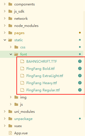 1.将外部字体下载放在存放静态资源的文件夹中,我是直接问UI设计师要的字体文件