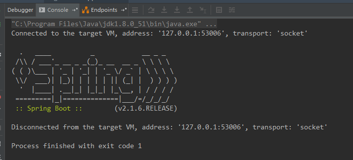 Disconnected from the target VM, address: '127.0.0.1:53006', transport: 'socket'