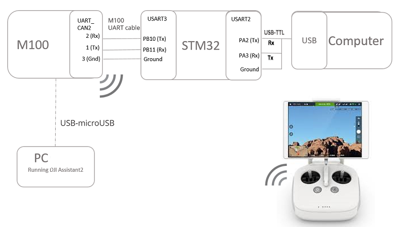 先进行硬件连接,确保你在遵循这些步骤硬件设置指南让您的连接正确。https://developer.dji.com/onboard-sdk/documentation/development-workflow/hardware-setup.html