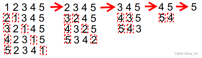 (3)判断[A,B)之间是否出现过B,若出现过,则跳过此元素,否则,继续交换,递归,复原操作