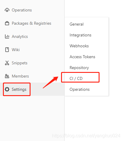b. 进入settings下 CI/CD: