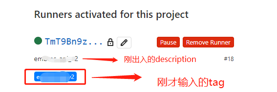 d. 留意红框中内容,使我们后面注册runners要用到的值: