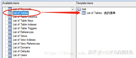 Available items – List of Tables 双击移动至右侧,用于显示全部表信息