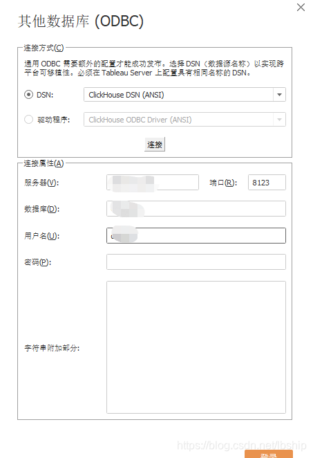 然后tableau配置clickhouse的ODBC,具体可以百度一下 Tableau如何连接Clickhouse