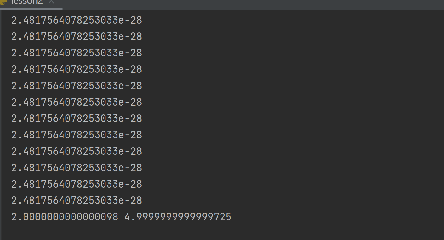 当然,实际中可能计算机得出的数会无限接近正确答案,但只有在线性方程中,才有可能得到一个准确的值,训练了一千次,损失值已经到了-28次,很小很小,我的a = 2,b也无限接近于5了: