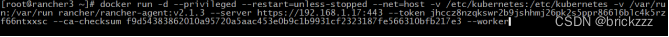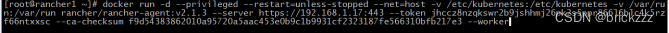 选择好主机角色,然后复制生成的命令,在待部署节点上执行此命令,部署此rancher节点,并加入集群: