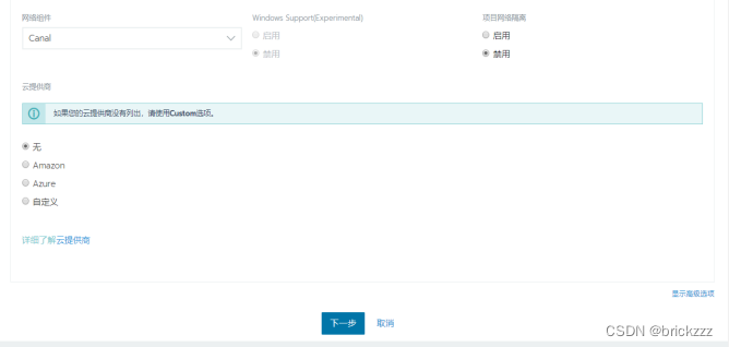版本选择最新版,网络选择canal,创建集群