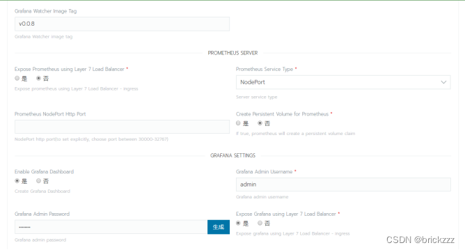配置grafana admin的密码,关闭L7 loadBlance