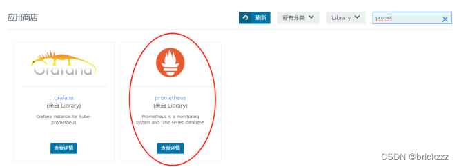 应用商店选择libary,搜索到Prometheus: