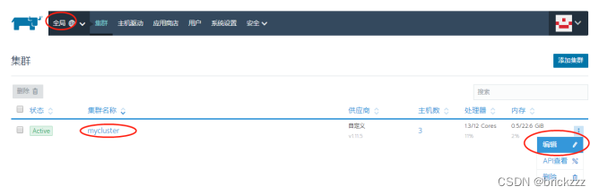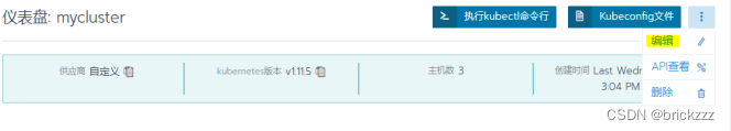 来到集群级别,然后点击最右边三个点的按钮,编辑:
