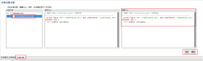 - 当首次迁移时对象出错,生成迁移报告后点击出错对象,弹出二次迁移界面
