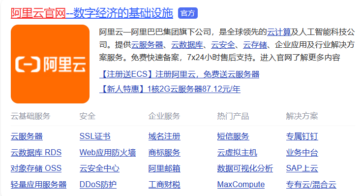 搜索阿里云 找到如下界面 点击进去然后注册登录