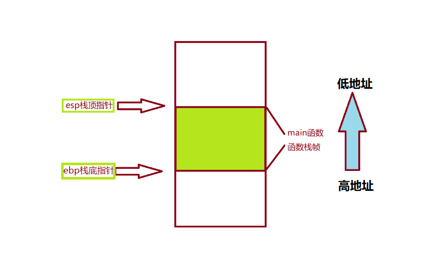 在创建函数时,操作系统都会在栈区上为函数开辟一块空间。而ebp和esp就分别处于栈顶和栈底,他们之间的区域就是这个函数的函数栈帧。ebp在栈底,储存栈底的地址,叫做栈底指针,esp在栈顶,储存栈顶的地址,叫做栈顶指针。
