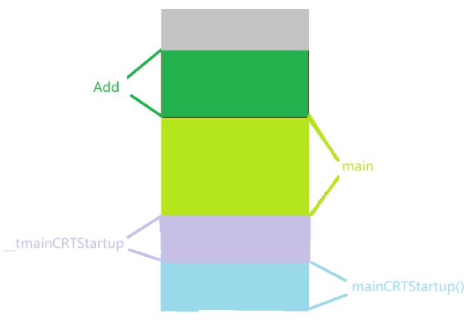 所以发现main函数是被__tmainCRTStartup()调用的而__tmainCRTStartup()又被mainCRTStartup()调用,而Add函数又被main函数调用。而平常main函数的返回值,就被放在mainret中。