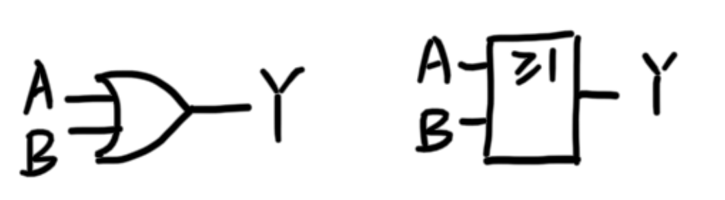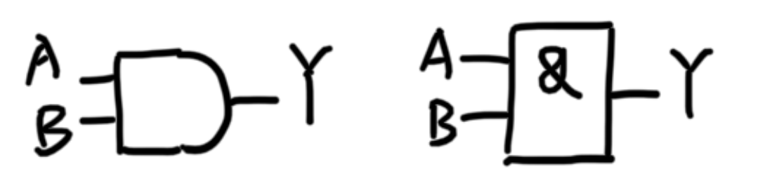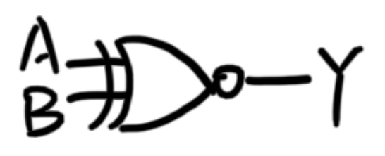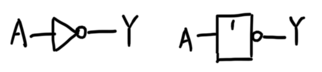 值得一提的是,不管三角形还是方框,都只是为了形式上更好看。后面的圈才是非门的主体。这个圈加在什么地方,就相当于在这里加一个非门。(在后面符合逻辑中会有例子)