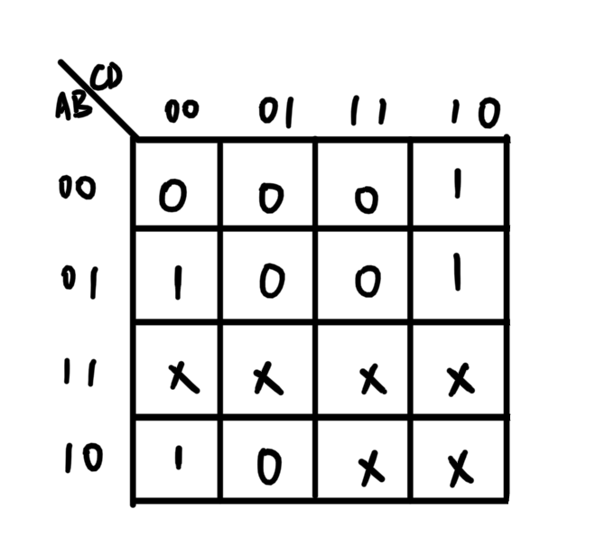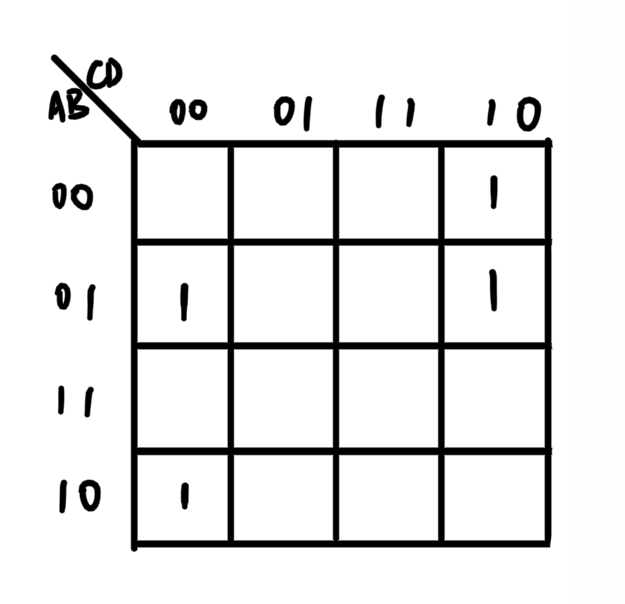 | 01 | A'BC'D' | A'BC'D | A'BCD | A'BCD' |